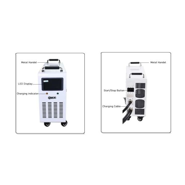 This is a DC portable electric vehicle charger, it charges very fast, small size, and is easy to move,High performance charging module, super wide charging range, high efficiency, 4.3 inch display screen, the display screen will prompt the operation steps, intuitive and simple, beautiful and generous.